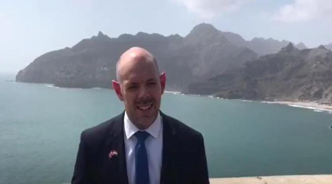 وفي أول تصريح، نشره السفير البريطاني عبر فيديو مسجل في حسابة الشخصي في تويتر، قال: "أبعث إلى جميع اليمنيين من مدينة عدن التي أزورها للمرة الأولى، وتابع انه "سعيد بهذه الاجواء، ورؤية مناظر عدن".